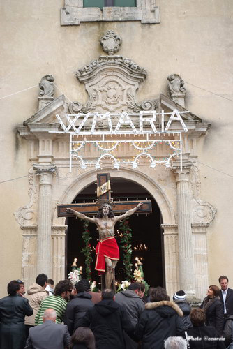 2009 Festa di ringraziamento in onore del “SS. CROCIFISSO DIO VIVO” e “MARIA SS. DEI MIRACOLI” In ricordo del miracolo della pioggia del 27/03/1957 . Festa che si ripete ogni anno verso la fine di marzo detta “Festa di li fimmini”. ------------------------------------------------------ Per Ricordare Il 29 /03/2009 si è svolta a Caltabellotta la consueta Festa del Ringraziamento per ricordare il miracolo di 52 anni fa. Questa festa è detta anche (festa di li fimmini ). Nella tarda mattinata si era messo a piovere lentamente, si pensava cessasse , cosi si è portato in processione il Santissimo Dio Vivo verso Sant'Agostino. Nel pomeriggio si è messo a piovere più forte ininterrottamente , cosi si è deciso di spostare la processione all'indomani pomeriggio. La mattina seguente alle 8 la catastrofe : il muro di Sant' Agostino cede crollando. Fortunatamente a quell'ora non c'era nessuno nello spiazzale; si è evitato un grave danno. Se il muro sarebbe crollato quando c'era la folla di fedeli che attendevano l'uscita dei Simulacri, sicuramente qualcuno avrebbe perso la vita . Le persone di Caltabellotta ringraziano il SantIssimo DIo Vivo e Maria Santissima dei Miracoli per aver protetto la comunità ancora una volta. Dettagli del crollo del muro (Clicca qui) |