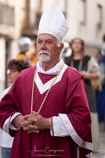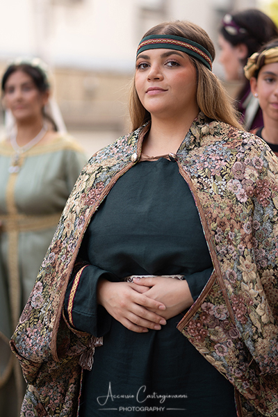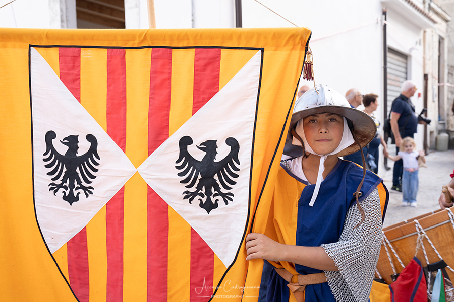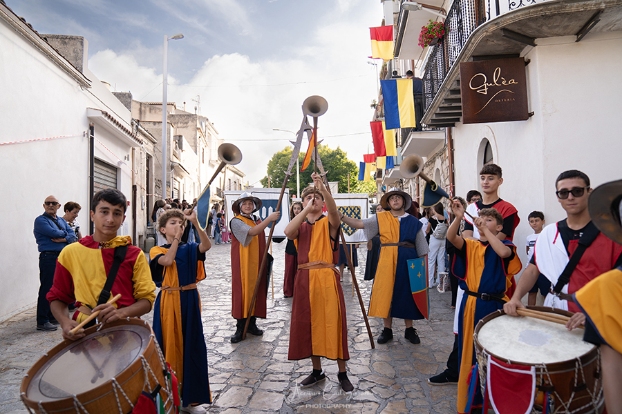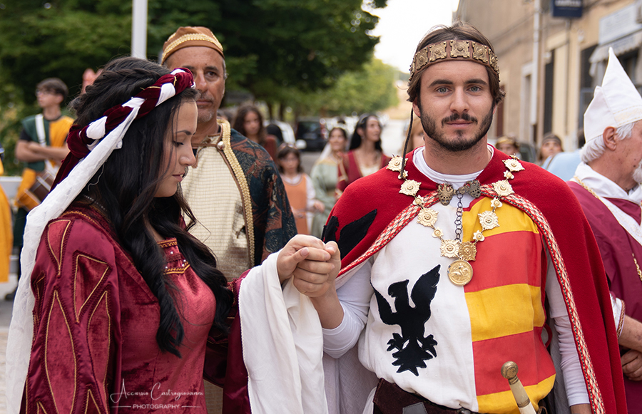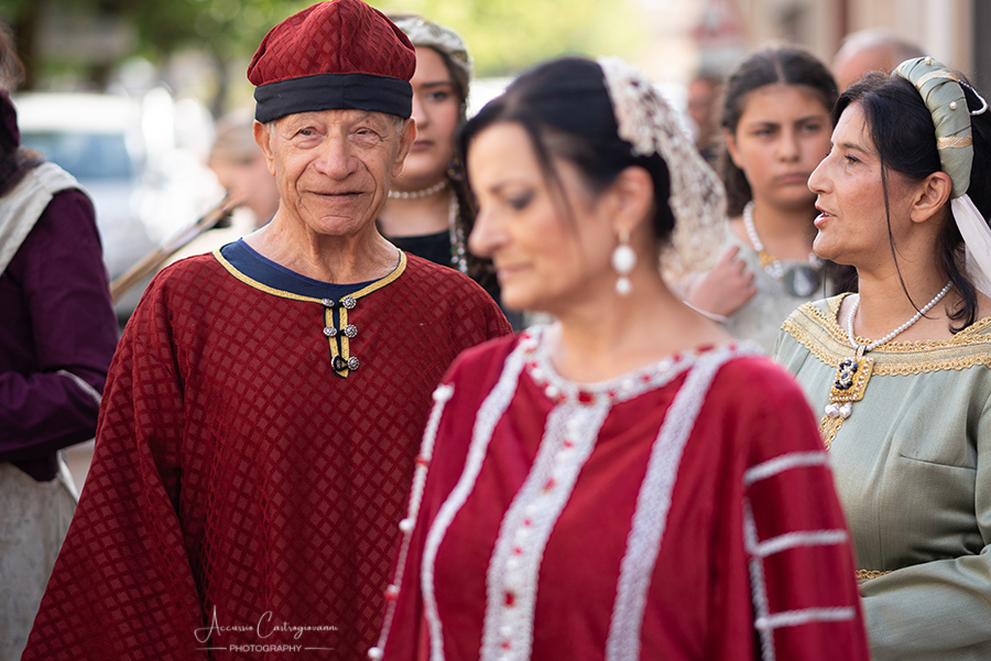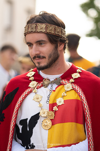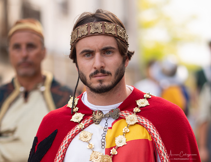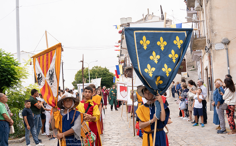 La "Pace di Caltabellotta" Dopo 20 anni di sanguinose lotte, i comandanti degli eserciti angioini e aragonesi, decisero che era giunta l’ora di sospendere il conflitto scoppiato a Palermo nel 1282. Pertanto, nell’agosto del 1302, a Caltabellotta, i rappresentanti degli schieramenti angioini e aragonesi firmarono il trattato di pace che sanciva la fine delle ostilità. I più recenti studi sostengono che molto probabilmente la pace fu decretata in contrada Vigna di Corte, mentre altri studiosi affermano che nei giorni seguenti gli accordi furono solennemente benedetti nella Cattedrale di Caltabellotta., e questo nel secentesimo anniversario di quei giorni vi descriviamo. Allora, quale rappresentante del potere temporale della chiesa guidata da papa Bonifacio VIII, partecipò a quegli storici avvenimenti Sua Eccellenza il vescovo di Caltabellotta, ( passo avanti e inchino da parte del figurante vestito con i panni vescovili); il notaio di corte ( passo avanti del notaio); sua maestà Federico III d’Aragona re di Trinacria( passo avanti); la sua promessa sposa principessa Eleonora d’Angiò ( passo avanti); i valorosi comandanti Carlo di Valois ( passo avanti); Roberto d’Angiò ( passo avanti); Vinciguerra Palici, Federico Incisa, Ruggero di Lauria; Giovanni Chiaramonte; Gli ambasciatori Americo del Sus e Teobaldo de Cippoio. Organizzato dall' Associazione "Pace di Caltabellotta" |